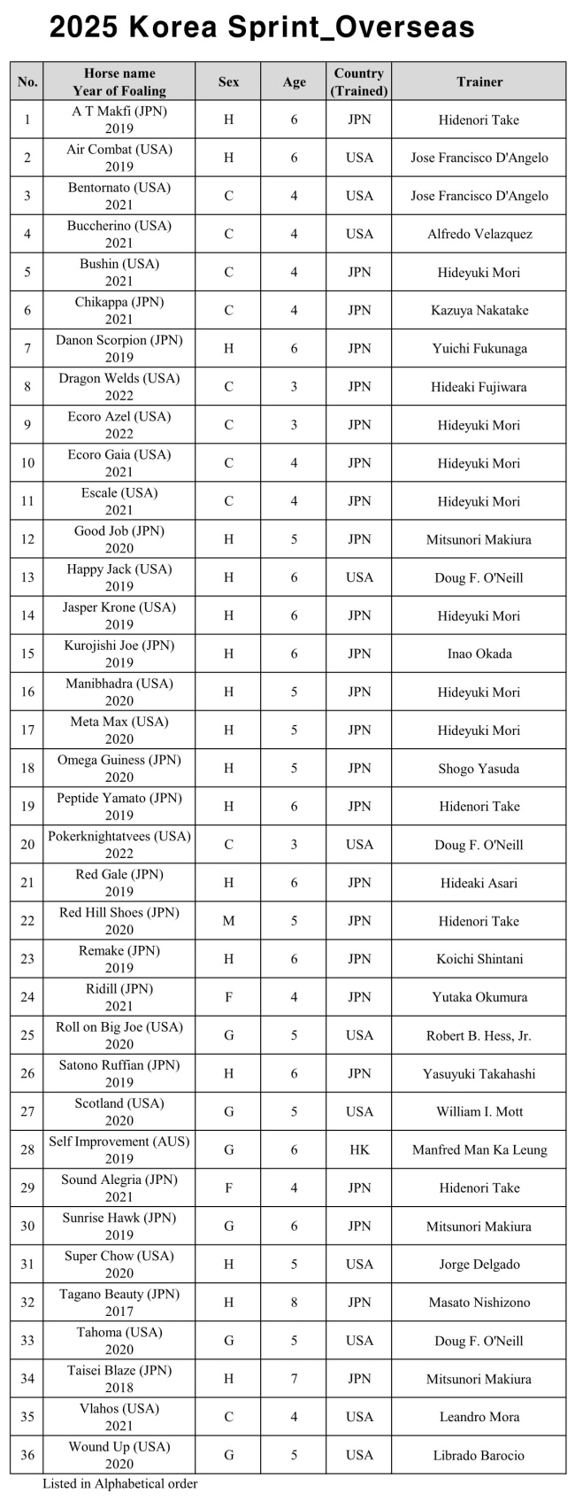 2025 OBS Korea Cup(IG3) Selected Horses